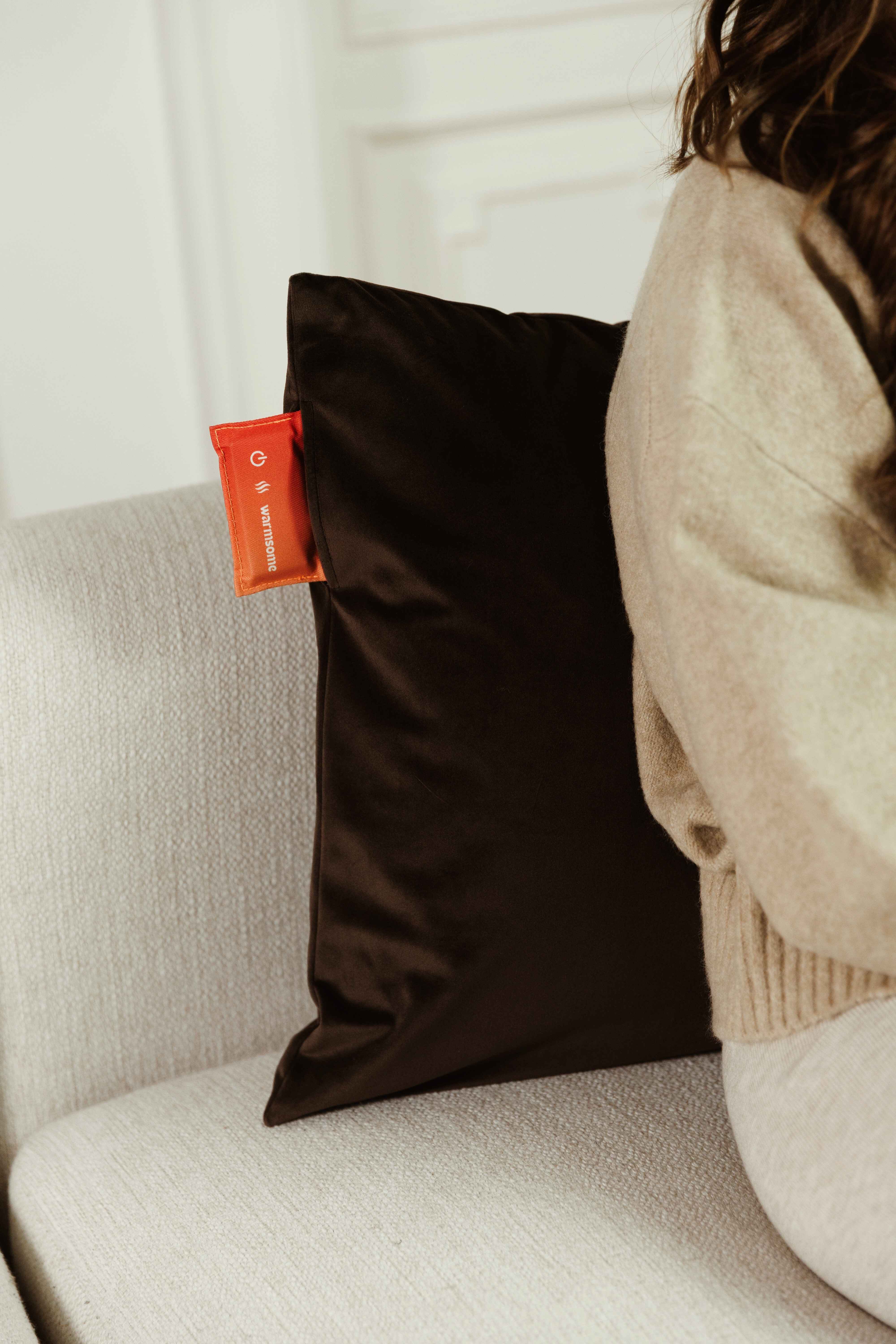 Our cordless heated cushion designed for deep, cozy warmth anywhere.